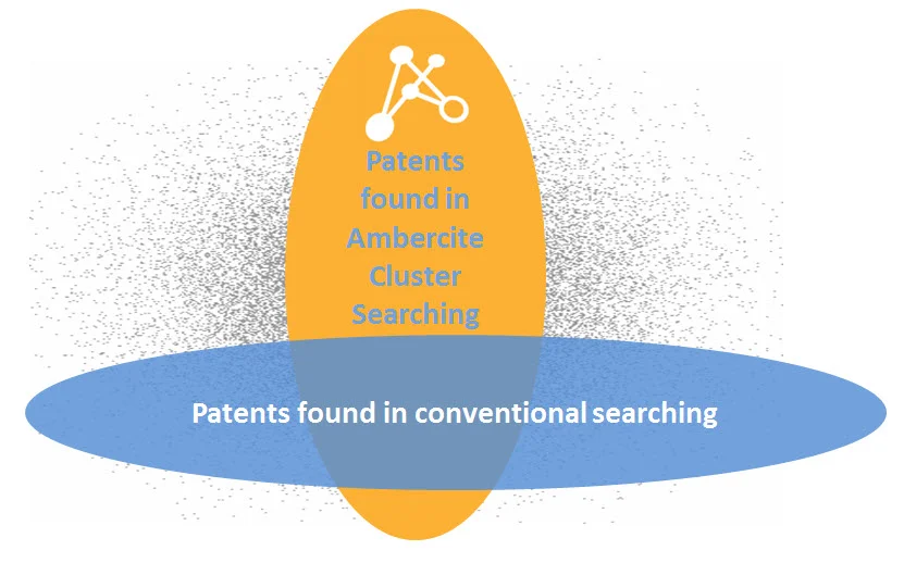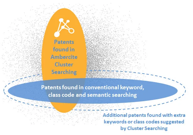 Here at Ambercite we often talk about the limitations of keyword searching - but in fact we are happy to acknowledge that both conventional and Cluster Searching can be helpful in finding relevant patents - as suggested by the image below: