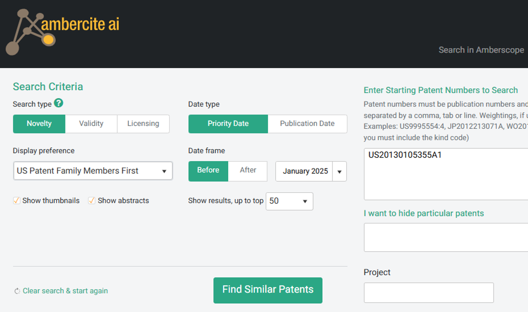 January 2025 - Here at Ambercite we have long realised the limitations of searching by keywords and class codes. No matter what you may think are the best and most appropriate keywords and class codes for a given technology, and you may be completely right, you can almost guarantee that you will have missed some relevant keywords or class codes.