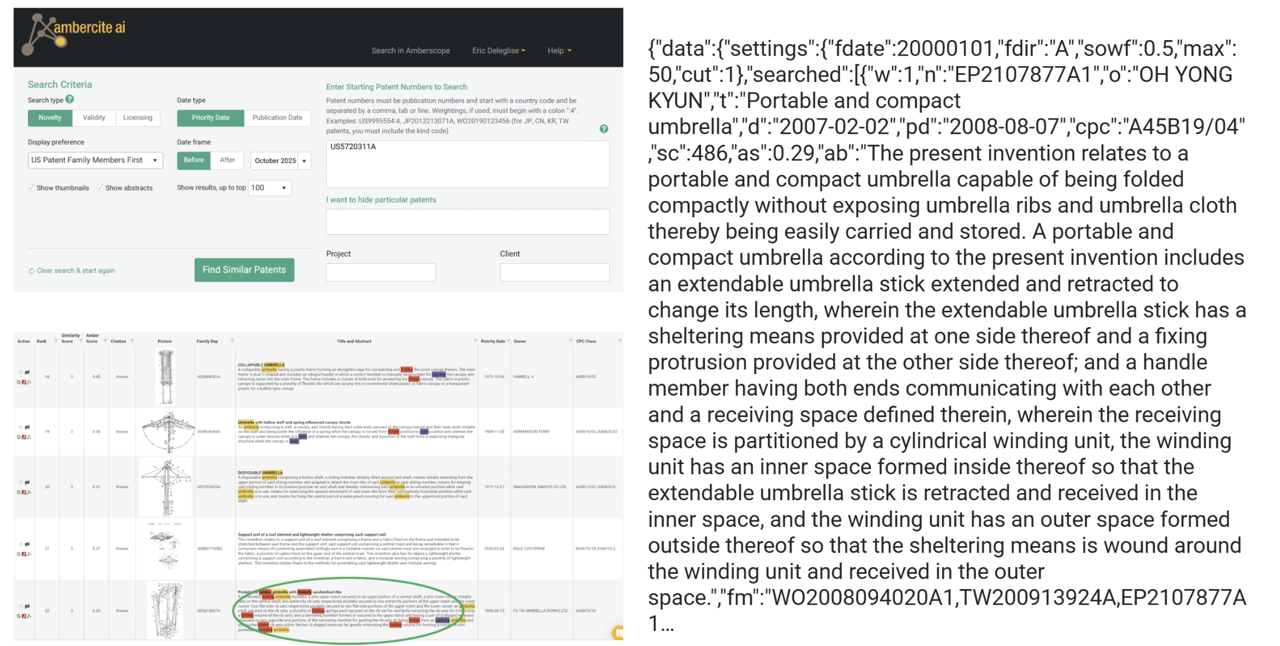 Because the search is launched from structured inputs, it is reproducible, traceable, and directly aligned with the invention intent. Ambercite now answers the right question at the right time: what does the patent landscape around this umbrella concept actually look like?